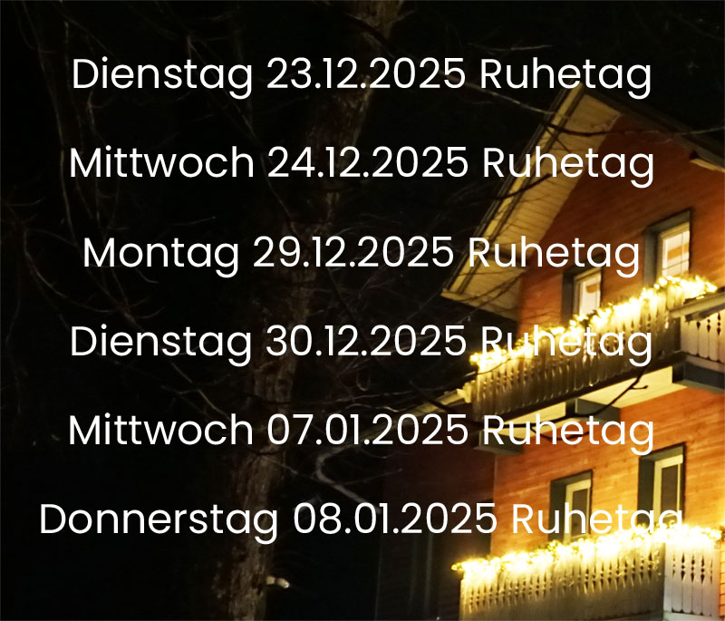 Bitte beachtet über die Weihnachtstage und dazwischen unsere geänderten Ruhetage.